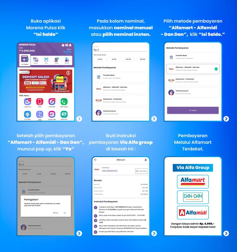 πŸ“Œ Cara deposit saldo via WhatsApp dan aplikasi Morena Pulsa dengan metode Via Alfamart :