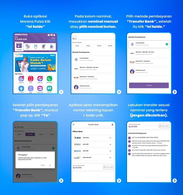 πŸ“Œ Cara deposit saldo via WhatsApp dan aplikasi Morena Pulsa dengan metode Transfer Bank :Β