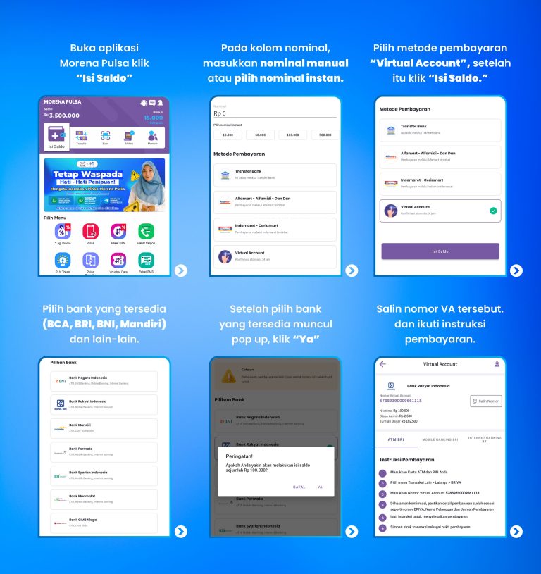 πŸ“Œ Cara deposit saldo via WhatsApp dan aplikasi Morena Pulsa dengan metode Virtual Account :